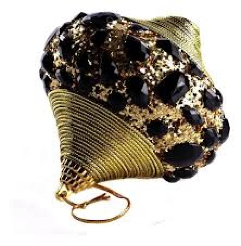 Bola 8cm Pião Cravejada Dourada e Preta Valor por Unidade