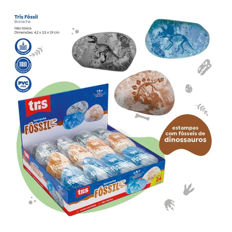 Borracha Fóssil - Cores Sortidas - Tris - Valor por Unidade