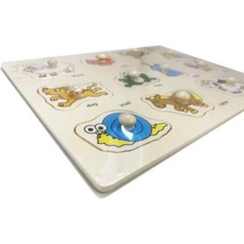 Brinquedo Pedagogico Madeira Encaixe Divertido com Pinos - Animais- Toy Mix