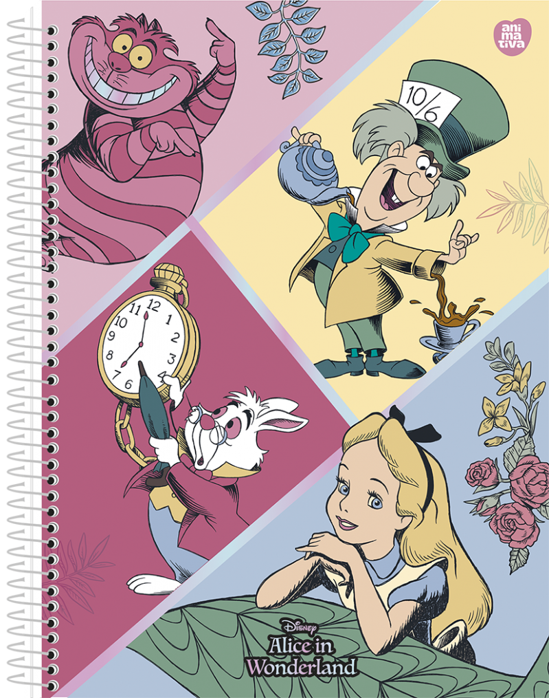 O caderno perfeito para quem ama Alice no País das Maravilhas e Disney! Com 4 opções de capas lindas e folhas brancas pautadas (com linhas) de gramatura 56g/m², este caderno será o seu companheiro para todas as suas anotações!