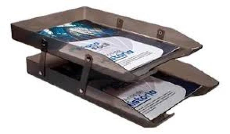 Caixa articulável injetada em poliestireno com duas bandejas no tamanho ofício. Proporciona arquivamento rápido de forma vertical.