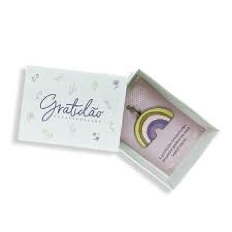 Contém um lindo chaveiro de metal e a frase: “A gratidão transforma pequenos gestos em boas lembranças.”