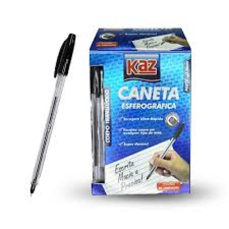 Caneta esferografica 1.0 Preta Corpo Sextavado com 50 Unidades - Kaz