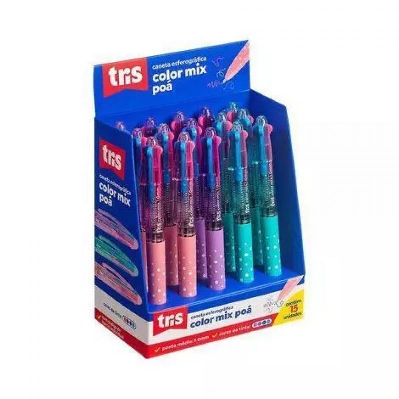 A caneta Color Mix Poá tem toda a praticidade da color mix: 4 cores na mesma caneta, escrita super macia e cores marcantes. Além disso, esta versão poá possui corpo estampado! Cores da tinta: azul clássico, azul claro, rosa e roxo.