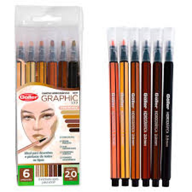 Canetas hidrográficas 6 cores Tons de Pele ponta 2.0 Goller