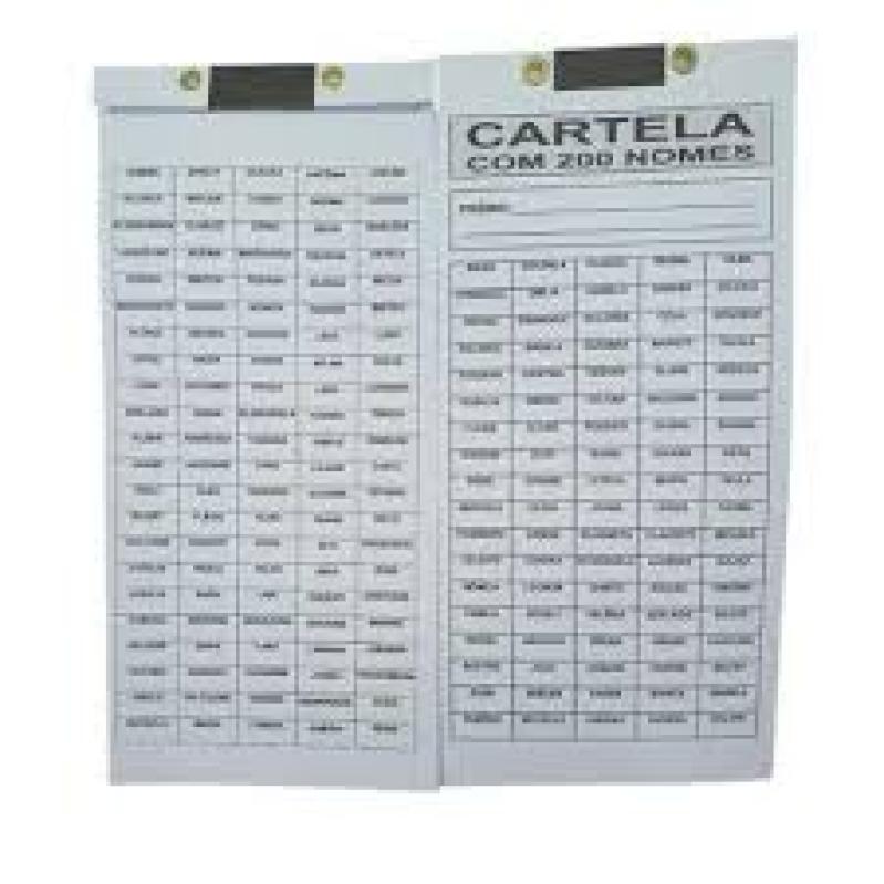 Cartela de Rifa com 200 Nomes - Cartela da Sorte