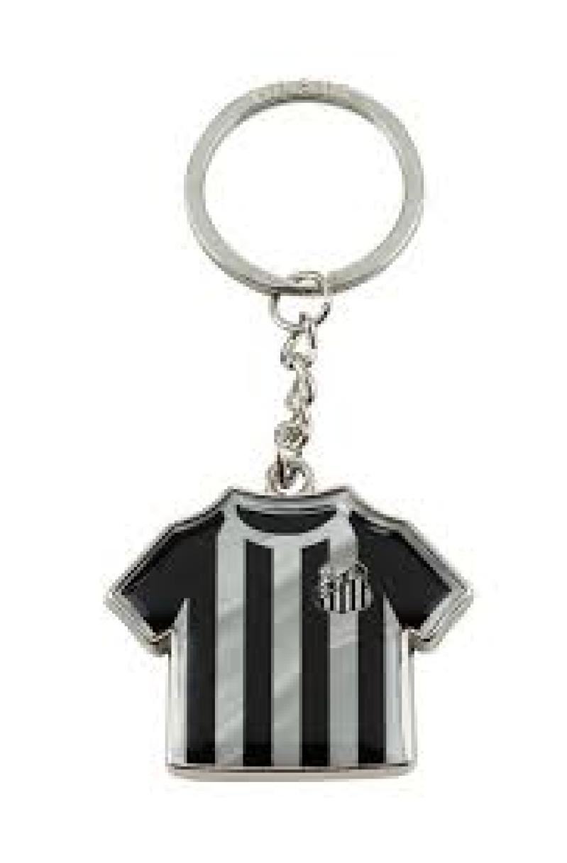 Chaveiro de metal no formato de camisa do Santos com 3.5 cm de altura. Perfeito para colocar as chaves de casa e do carro ou pendurar na mochila para enfeite.