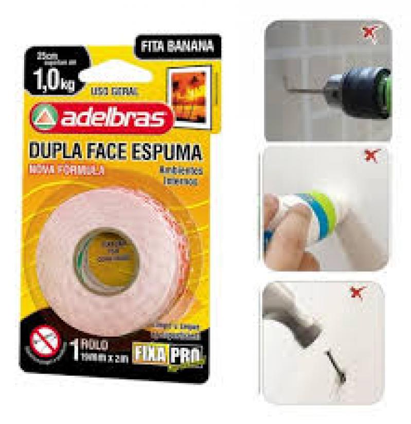 Fita Dupla Face de Espuma 19mm x 2mSuporta 1k Fita Banana Aldebras