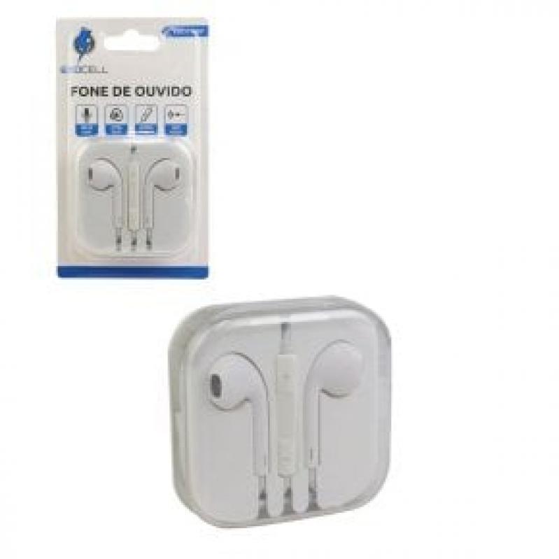 Fone de Ouvido com Microfone 120cm Estojo Branco.