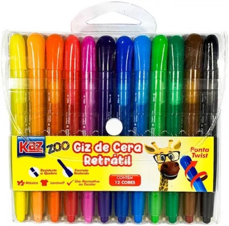 Giz de Cera com 12 Cores Retratil Twist Kaz
