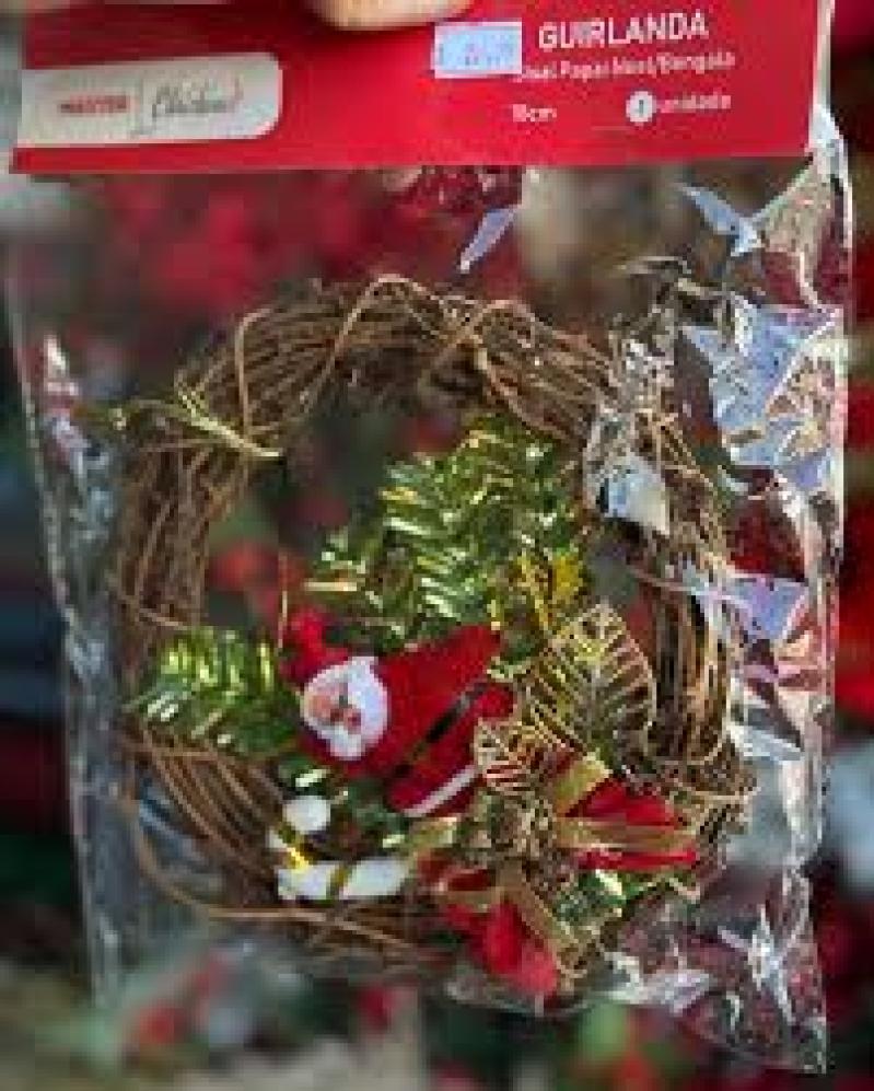 Guirlanda 18cm Papei Noel com Laços e Bengala