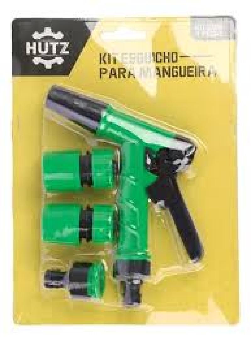 Kit esguicho e engates para mangueira 4 peças. Contém: 1 Esguicho tipo Pistola (18cm)
