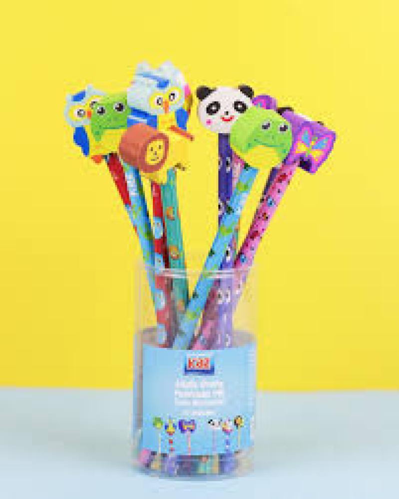 Lapis Preto Plástico com Borracha Fantasia Bichinhos Kaz -Avulso