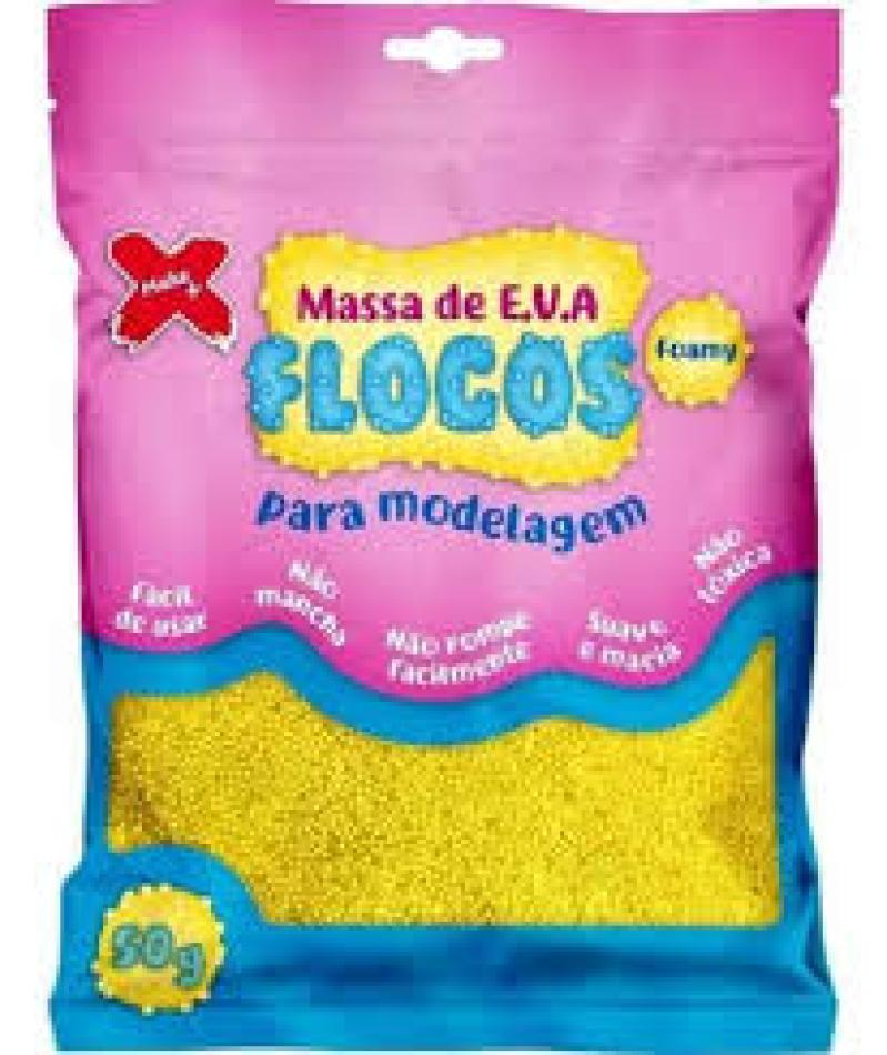 Massa flocada de eva para uso em artesanatos. Com flocos de isopor, secagem em aproximadamente 6 horas em contato com ar, não tóxico, tingível, suave e macia e não mancha. Produto muito leve após seco, super maleável, rendimento equivalente a 50g de biscuit. Cor: amarelo. Possíveis criações: topos de bolo / mobiles / cenários / bolos fake / bonecas / chaveiros / enfeites diversos. Este produto não é um brinquedo, após seco não é possível reidratar'.