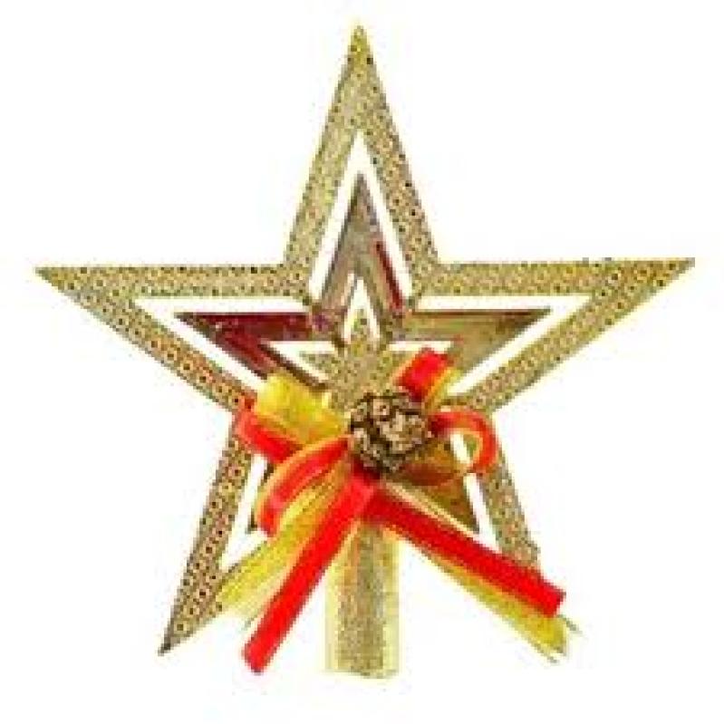 Ponteira Estrela Com Laço Para Árvore De Natal 15cm Dourada Enfeite Decoração Natalina