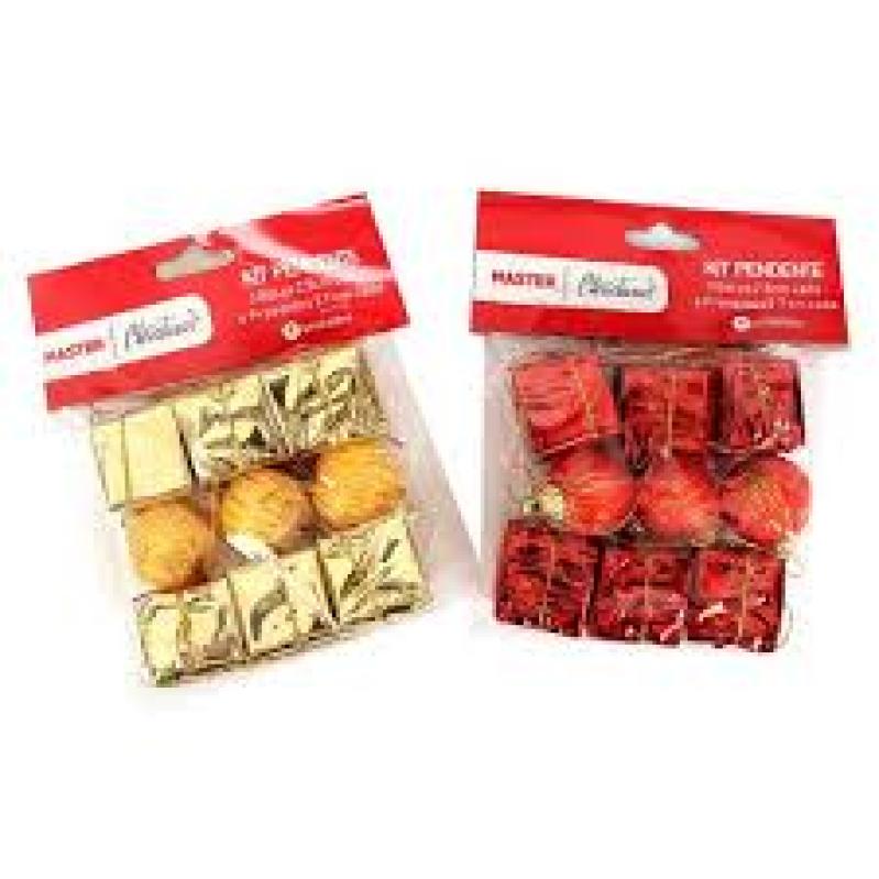 Kit com 9 enfeites pendentes de bolas de Natal, medindo 2,5 cm cada. Perfeitos para decorar sua árvore de Natal, trazendo brilho e sofisticação com um toque clássico e festivo.
