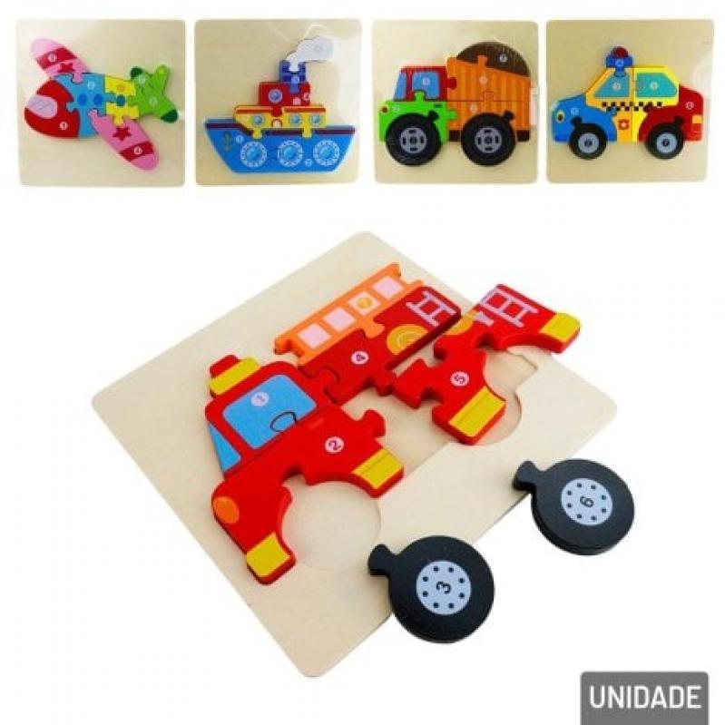 Uma forma diferenciada para as crianças brincarem com veículos, com peças de madeira e encaixe de quebra cabeça;
