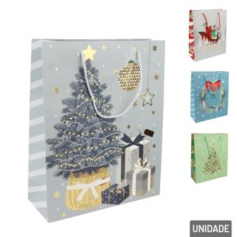 Deixe seus presentes ainda mais especiais com a Sacola de Papel 26x19x32cmcm com Figuras Natalinas Sortidas. Ideal para embalar lembranças com praticidade e charme, ela traz estampas festivas que remetem ao espírito do Natal, como árvores, renas, bolas e outros símbolos tradicionais. Feita em papel resistente e com alças reforçadas, é perfeita para presentear com estilo e elegância. Disponível em modelos sortidos, garantindo variedade e beleza em cada embalagem.